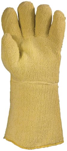 VÁGÁSBIZTOS KEVLAR ÖTUJJAS KESZTYŰ: * 790 g/m2 vastag, emelt szinten hőálló és vágásbiztos, hurkolt Kevlar szál * 500 g/m2 vastag, hőálló és vágásbiztos, aramidszálas belső bélés * plusz 200 g/m2 közbélés * 500°C kontakt hőhatásnál 15 sec időtartamig nyújt védelmet * 31 cm hosszú, ötujjas változat * CSOMAGOLÁS: 50/5