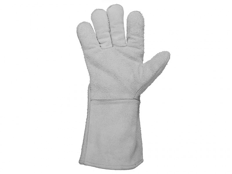 Szikra és lángálló impregnált marhahasíték, hőszigetelő pamutbélés. 100°C kontakt hő elleni védelem (15 sec) Felhasználási terület: MIG/MAG hegesztés, MMA hegesztés Méret: 10 Szín: Szürke Minősítés: EN420 EN388: 3143 EN407:413X3X EN12477: type A Csomagolás: 10 pár/csomag