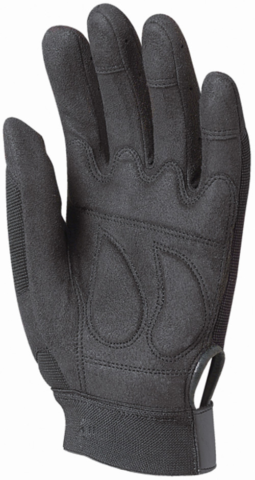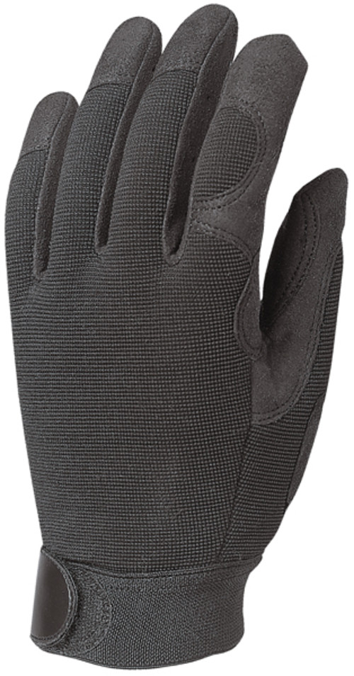 Fekete szintetikus-bőr sofőr kesztyű, poliészter hátrésszel.Párnázott tenyérrész. Fekete, elasztikus mandzsetta tépőzárral