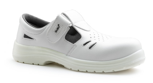 * fémmentes tépőzáras szandál kompozit lábujjvédővel, folyadékoknak jobban ellenálló, kiválóan szellőző fehér mikroszálas felsőrésszel * antisztatikus, olajálló, hajlékony, kétrétegű, fehér PU talp, ütődéselnyelő sarokkal * nedves acél és kerámiafelületekre bevizsgált, SRC fokú csúszás elleni védelem, kényelmes talpbélés * könnyű súlyú, egészségügyi, élelmiszeripari munkákhoz, egésznapos viseletre ajánlott védőlábbeli szivaccsal párnázott bokarésszel, szellőzőnyílásokkal