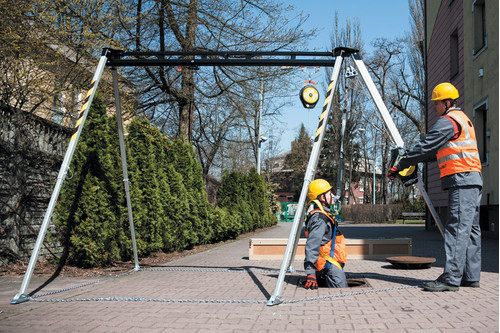 * visszahúzható zuhanásgátló karos személyi mentőkészülék, 15 m hosszú, 4,7 mm átmérőjű acélkábellel* forgókarral perceken belül felszínre lehet juttatni a max. 140 kg súlyú mentésre szorulót* rugós tartódob, feszes sodronykötélzet, nem igényel plusz energiaelnyelőt* súlya 11 kg, alumínium házzal