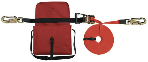 * állítható, max. 20 m hosszú, vízszintes kikötőhevederzet, amely 3 személy egymástól független, egyidejű munkavégzését teszi lehetővé* 19 m hosszú, 35 mm széles, piros munkaheveder és 0,7 m hosszú, 50 mm széles, fekete csatlakozó heveder rávarrott tartótáskával* racsnis, fém hossz- és feszességállító, műanyag fogantyúkkal * két acélkarabinere (AZ017T) segítségével a kikötőheveder csak az EN795-ös szabványnak megfelelő, egy síkban elhelyezett fix kikötési pontokhoz rögzíthető, melyek minimális teherbírása 3 fő esetén 29 kN kell, hogy legyen