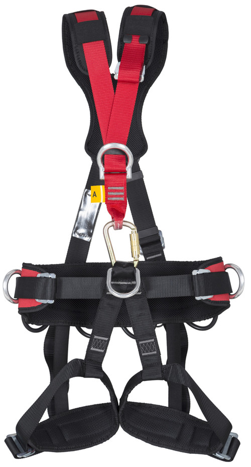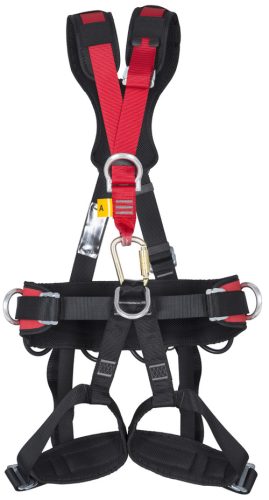 * teljes testhevederzet: 45 mm poliészter, állítható váll-, comb- és derékhevederek, egy-egy hátsó-, mellső- és beülő fém bekötési ponttal * állítható munkahelyzet-beállító deréköv két fémcsatos bekötési ponttal * a dupla párnás munkaöv és combhevederek a normál hevederszalag mellett rugalmas gumipánttal is össze vannak kötve * súlya: 1660 g