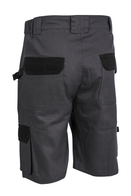 * 260 g/m2 kopásálló, sávolykötésű, 100% pamut anyagból készült, komfort fit szabású bermuda* gumírozott derék széles, erős övbújtatókkal* két oldal-, egy teljes, bőségráncos rátétes-, három szerszám- és két zárható farzseb, egy szerszám- és egy kalapácstartó hurok* derékon plusz tartók, melyekre szükség szerint kiegészítő zsebek, szerszámhordók tehetők