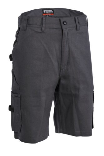 * 260 g/m2 kopásálló, sávolykötésű, 100% pamut anyagból készült, komfort fit szabású bermuda* gumírozott derék széles, erős övbújtatókkal* két oldal-, egy teljes, bőségráncos rátétes-, három szerszám- és két zárható farzseb, egy szerszám- és egy kalapácstartó hurok* derékon plusz tartók, melyekre szükség szerint kiegészítő zsebek, szerszámhordók tehetők