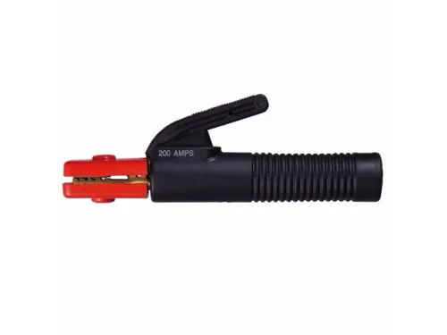 Kiváló minőségű tömör sárgarézből készült, teljesen szigetelt elektródafogó. A tartópofák erős szorítórugóval biztosítják az elektróda rögzítését 7 különböző pozícióban. 200A@35% 160A@60% 2.5-4mm elektródaátmérőhöz. Javasolt minimális kábelkeresztmetszet 16-25 mm2