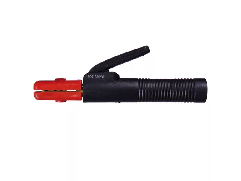 Kiváló minőségű tömör sárgarézből készült, teljesen szigetelt elektródafogó. A tartópofák erős szorítórugóval biztosítják az elektróda rögzítését 7 különböző pozícióban. 500A@35% 380A@60% 5-6.3 mm elektródaátmérőhöz. Javasolt minimális kábelkeresztmetszet 50-70 mm2