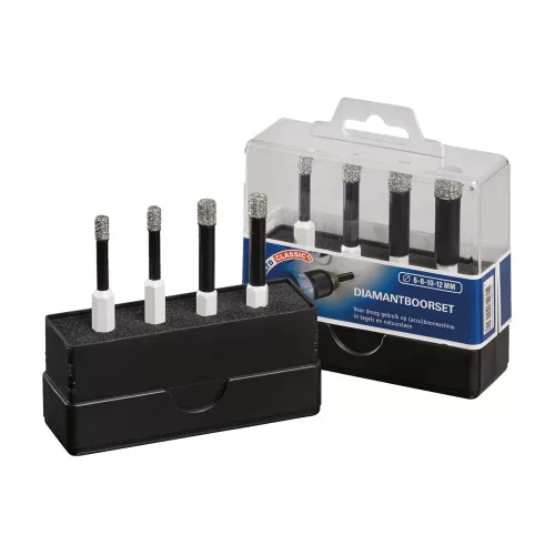 Száraz használatra sarokcsiszolókhoz. Tengelyméret: M14 Tartalma 4 db fúró, Ø 6-8-10-12 mm