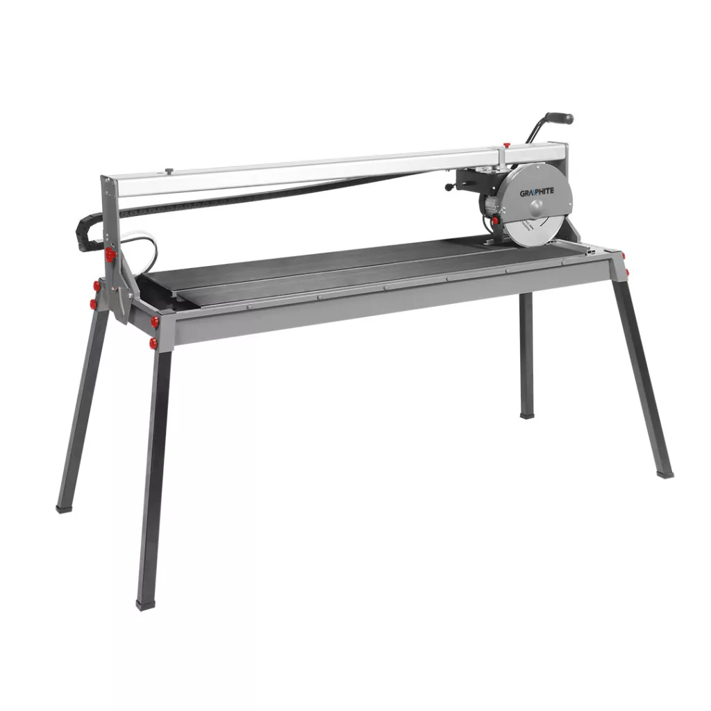 Csempevágó 1500 W, 250 x 25 mm, 1200 mm vágási tartomány, 3 m kábel 59G892 a GRAPHITE-tól egy 1500 W-os teljesítményű speciális gép, amely 52 mm vastagságig és 1200 mm maximális hosszig alkalmas csempe és kő precíziós vágására. A szerszám 0° és 45° közötti ferde vágási tartományt kínál. Számos elektromos biztonsági funkcióval rendelkezik, beleértve a PRCD hibaáram-megszakítót, valamint az elektromos motor hővédelmét. A vágógép hőálló alumíniumötvözetből készült vágófej-vezetővel és csúszásgátló anyaggal borított asztallappal van felszerelve, amely megakadályozza az anyagok ellenőrizetlen mozgását. A gép I. védelmi osztályú és IP54-es védettségű. A vágógép lábai a könnyebb tárolás vagy szállítás érdekében összecsukhatók. A rugalmas és robusztus tápkábelt viszont 3 m hosszúságú gumiköpeny védi - professzionális és ipari alkalmazásokhoz ajánlott, beltéri és kültéri használatra egyaránt. Az európai szabványoknak való megfelelést a CE tanúsítvány igazolja.