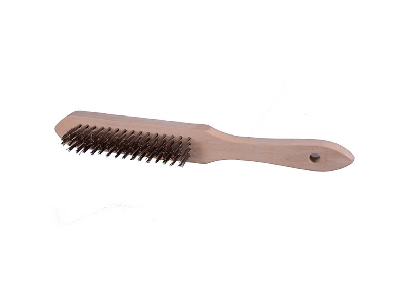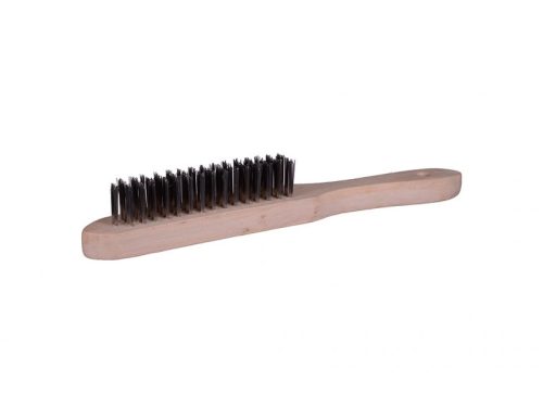 Rozsdamentes acél drótkefe, fa markolattal.