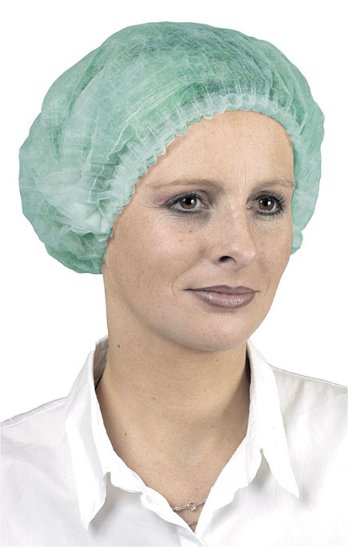 * polipropilén anyagú, zöld, gumírozott egészségügyi sapka * 16 g/m2 vastag alapanyag* csíkban összehúzott kialakítás