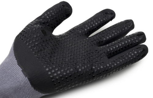 Szürke, varrás nélküli, poliamiddal megerősített, 15-ös kötésű kesztyű, tenyerén nitril mikro-habbal és pettyezve, kötött mandzsettával.A tenyér nitril alapanyagának köszönhetően enyhén olajálló tulajdonsággal rendelkezikOEKO-TEX® STANDARD 100 minősítés , CQ 1301/1, IFTH vagy 15.HCN.70502, HOHENSTEIN