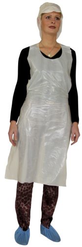 * egyszer használatos, fehér, polietilén fóliakötény* mérete: 120 x 70 cm* 22 mikron vastag