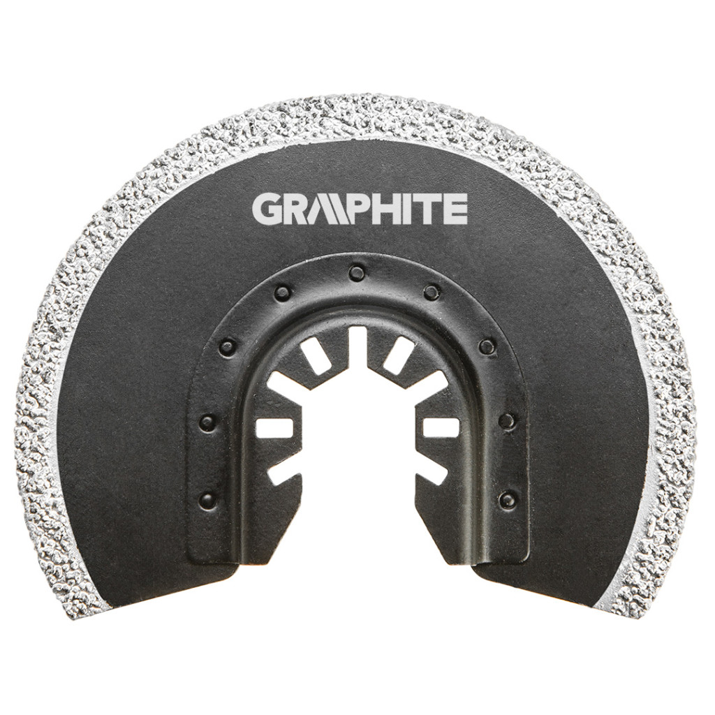 Fűrésztárcsa többfunkciós géphez, HM félkör - wolfram-karbid szemcsebevonat, kerámiák vágásához, átmérő 85mm. Fűrésztárcsa többfunkciós géphez, HM félkör - wolfram-karbid szemcsebevonat, kerámiák vágásához, átmérő 85mm (cikkszám: 56H004). Kerámiákhoz, volfrám-karbid szemcsékkel szórt élű lap. Lehetővé teszi a csempék precíz vágását egyenes vonal mentén és a fuga eltávolítását a GRAPHITE multifunkcionális szerszámgéppel.
