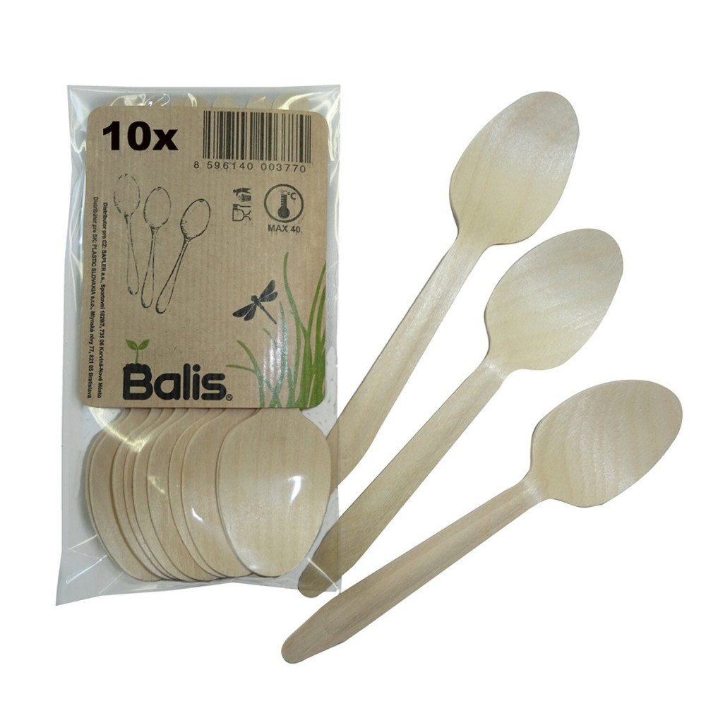 Fa kanál 10 darabos csomagolásban. Lebomló és komposztálható evőeszköz.