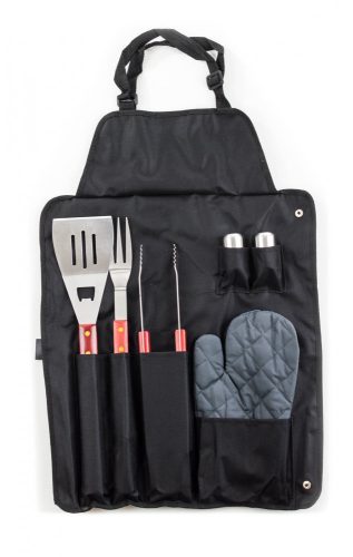 A minőségi grillezéshez minőségi eszközök szükségesek. A minőséget garantálja a G21 szett. A grilleszközöket a praktikus textil zsebében tárolhatja, melyet grillezés közben akár kötényként is használhat.A kötény zsebeiben mindent megtalálhat, ami a grillezéshez szükséges lehet. Talál benne fogót, lapátot, hosszú villát, só- és borsszórót, illetve egy kesztyűt is.