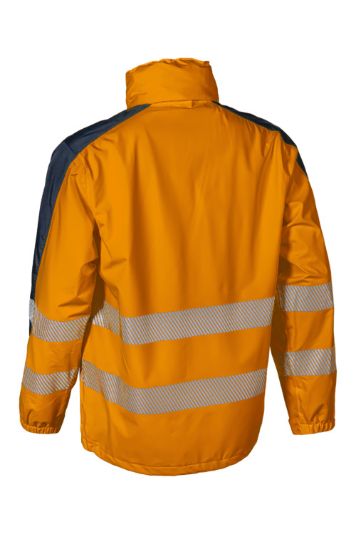 * 100 g/m2 vastag 2 rétegű Softshell alapanyag: 100% mechanikus stretch poliészter + TPU membrán, 100% poliészter hálós bélés a testen ás a karokon és 55 g/m2 vastag 100% poliészter tafeta bélés a kapucniban és a zsebeknél* 5 cm széles szegmentált fényvisszaverő csík: 2 a test körül, 2 a karon, álló gallér végéig futó, tépőzárral, fedett cipzár* az alapanyag vízállósága: 8000 mm, páraáteresztő képessége: 5000 g/m2/24h* hegesztett varrások, a gallérban rejtett, tépőzárral állítható vihar kapucni