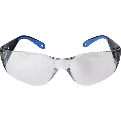 Színtelen lencsés, kényelmes védőszemüveg. A merev oldalsó szárak masszívvá és kényelmessé teszik Színtelen lencsék a normál munkához és kék tükrös felület a kültéri munkákhoz A kültéri és beltéri lencsékkel ideális targoncások számára akiknek gyakran kell mozogni kültéri és beltéri helyszínek között 180 -os látóteret és tökéletes optikai minőséget biztosít EN 166 1FT Keret jelölése T EN166 FT CE Lencse jelölése 2C-1 2 T1 FT CE
