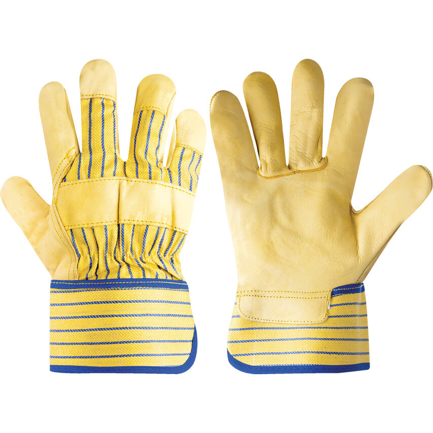 Marhabőr szerelőkesztyűk, 5 cm-es biztonsági mandzsetták, 10-es méret. A nejlon és pamut keverékéből készült polárbélés gondoskodik a felhasználó kényelméről Marhabőr külső rész a tartósság érdekében Az elasztikus hátoldal szorosan tartja a kesztyűt munka közben Felcsúsztatható stílusú mandzsetta a könnyű fel- és levételhez I KAT