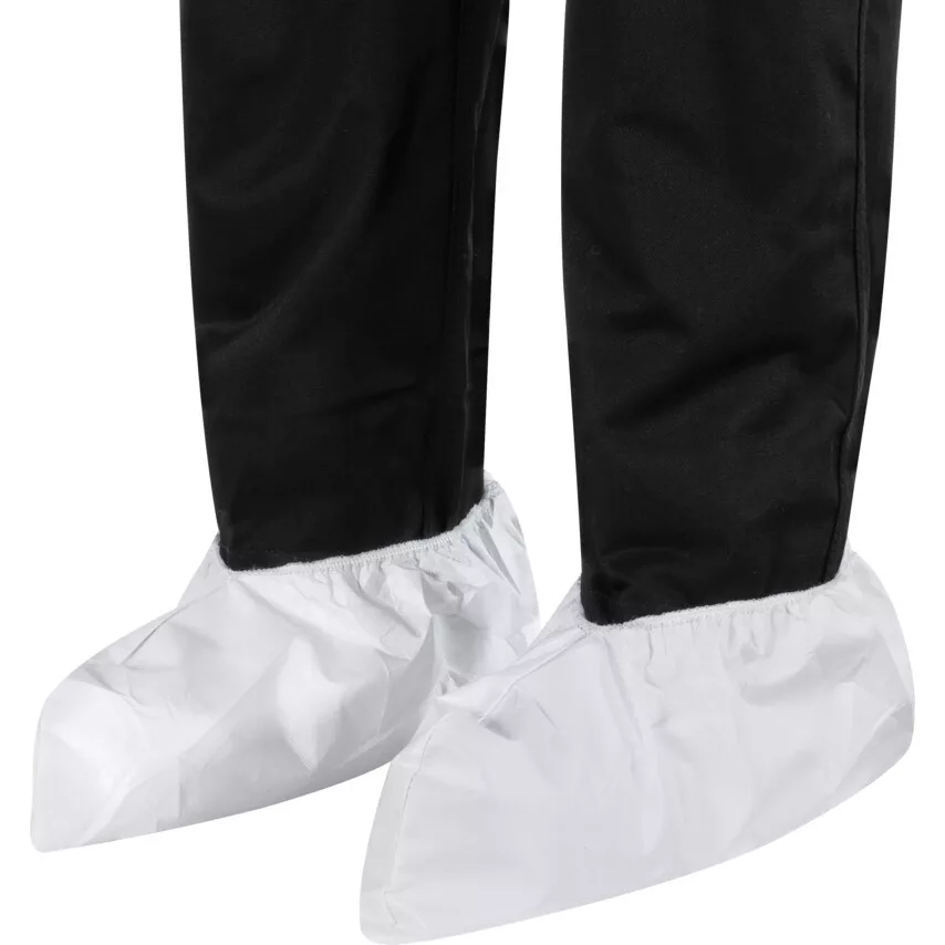Mikroporózus csizmavédő lábzsák. A fehér mikroporózus anyag további védelmet biztosít olyan területeken ahol nagyobb eséllyel fröccsen rá az anyag Elasztikus bokarész Kopásálló talp Az EN ISO 13034 P szabvány szerint bevizsgálva 100 db cipőre elegendő csomagokban kapható EN ISO 13034 2005