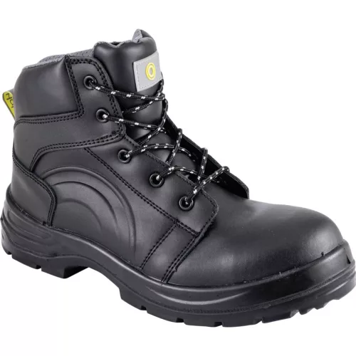 S1P Fekete női bakancs. Kompozit orrbetét nemfémes védő talpközéppel Sima fekete bőr felsőrész Fémmentes Kényelmes talpbetét Energiaelnyelő sarokrész PU PU járófelület Egy pár tartalék fűző EN ISO 20345 2011
