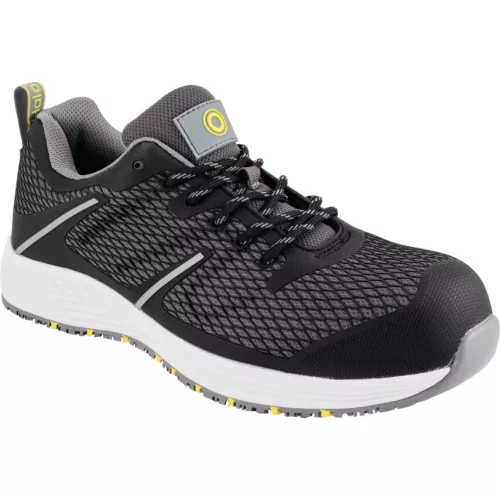 S3 fekete munkavédelmi cipő. Kompozit orrbetét nemfémes védő talpközéppel Fekete szövet és TPU felsőrész Unisex fazon Kényelmes talpbetét Energiaelnyelő sarokrész EVA gumi járófelület Egy pár tartalék fűző EN ISO 20345 2011