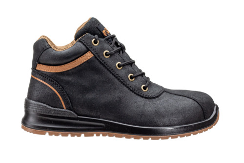* biztonsági női védőbakancs fekete vízlepergető „égetett hatású” marhabőr felsőrésszel* könnyű kompozit lábujjvédő és hajlékony arámid szálas textil átszúrás elleni talplemez* páraáteresztő, nedvszívó és gyorsan száradó 3D hálós belső bélés* szivacsos szártető és párnázott nyelv, fém fűzőlyukak, HI-POLY habosított talpbetét* antisztatikus, flexibilis, SRC csúszásbiztosságú, olajálló, kétrétegű PU talp* energiaelnyelő sarok és talp – védi a hátat és az ízületeket – könnyen hajló talp a kényelmes gyaloglás érdekében* félcipő változatban is: 9IOLL10