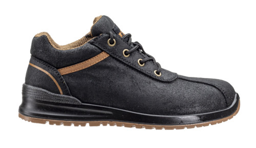 * biztonsági női védőlábbeli fekete vízlepergető „égetett hatású” marhabőr felsőrésszel* könnyű kompozit lábujjvédő és hajlékony arámid szálas textil átszúrás elleni talplemez* páraáteresztő, nedvszívó és gyorsan száradó 3D hálós belső bélés* szivacsos szártető és párnázott nyelv, fém fűzőlyukak, HI-POLY habosított talpbetét* antisztatikus, flexibilis, SRC csúszásbiztosságú, olajálló, kétrétegű PU talp* energiaelnyelő sarok és talp – védi a hátat és az ízületeket – könnyen hajló talp a kényelmes gyaloglás érdekében