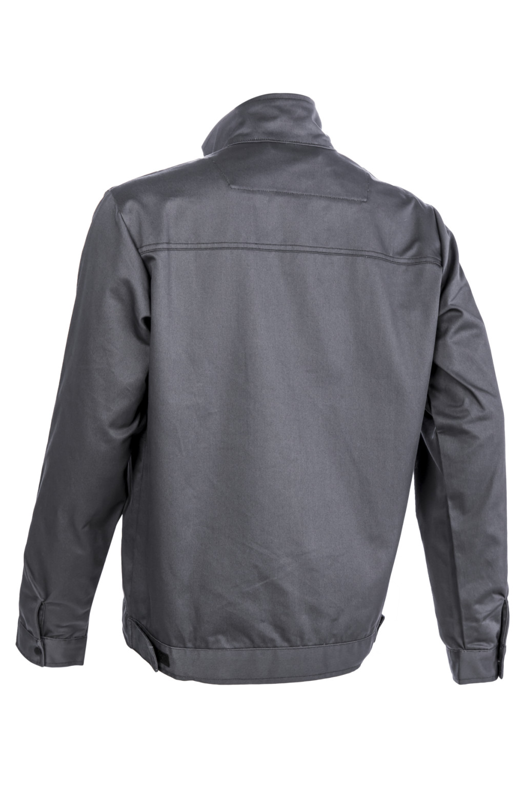 300 g/m2 vastag, kopásálló, sávolykötésű anyag sötétszürke színben, 60% pamut, 40% poliészter, ideális intenzív ipari használatra,Egyenes szabású, dzsekifazonú kabát, patenttal állítható mandzsettával és tépőzárral állítható derékkal,Teljesen fémmentes, megerősített váll- és hátrész,Állig érő húzózár, szennyeződésektől védő, tépőzáras cipzárfedővel, álló gallérral,sok zsebbel