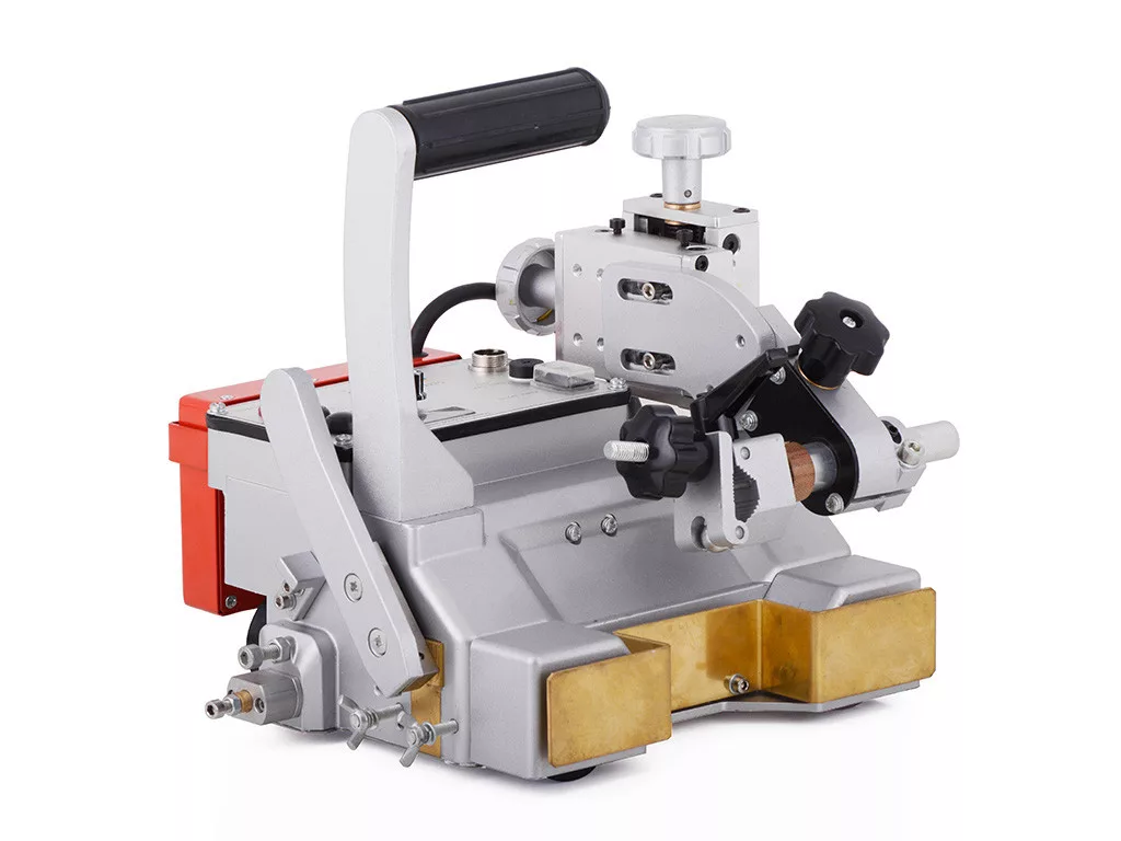 Mágneses automata hegesztő traktor Első lépés a hegesztés-automatizálás utján. A befogó bilincs érzékelő segítségével biztosítja a kocsi egyenletes futását az ívgyújtástól a hegesztés befejezéséig. - A befogó bilincs egy bizonyos szögben képes kitérni a hegesztés mentén, hogy megfeleljen a Push-Pull hegesztés speciális igényeinek. - A mágnes kioldó kar könnyen működtethető a telepítéshez. - Nagy teljesítményű mágneses növeli a profil hegesztés megbízhatóságát és biztosítja a stabilitást a zavartalan működéshez. A robot közvetlenül használható függőleges hegesztéshez. - Választható lágy és kemény kerék áll rendelkezésre a függőleges, vízszintes, íves és tompahegesztéshez.