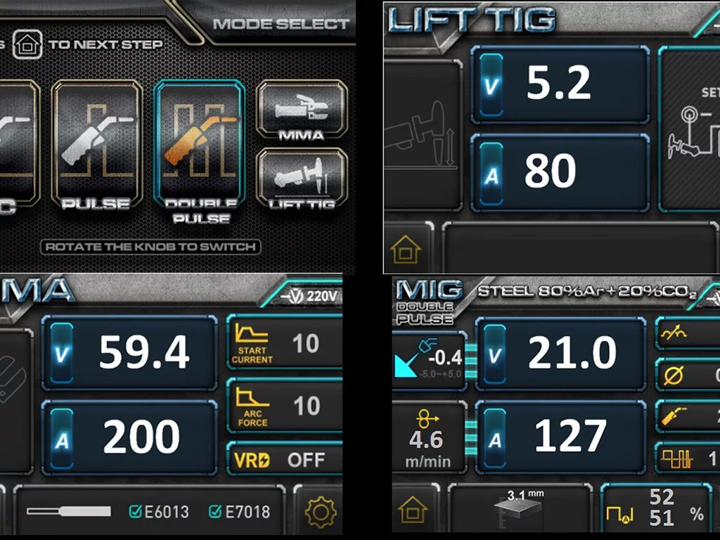 Szinergikus vezérlésű, impulzus és dupla impulzus hegesztő programokkal, hordozható MIG/MAG, MMA, Lift TIG hegesztő áramforrás.