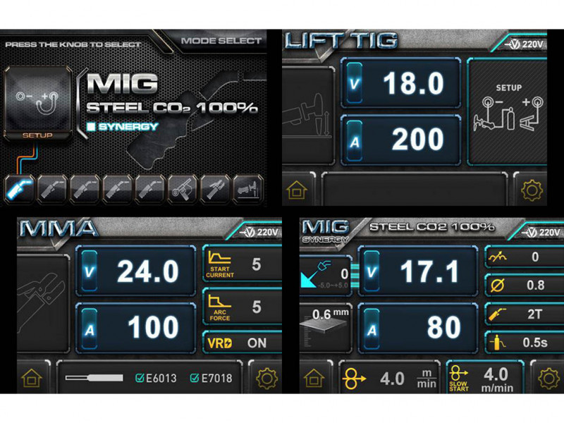 Szinergikus vezérlés, hordozható MIG/MAG, MMA, Lift TIG hegesztő áramforrás. - LCD képernyős kezelőpanel. - Mikroprocesszor vezérlésű, teljesen digitalizált paraméter szabályozás. - Max. 18 kg-os huzaldob befogadására alkalmas. - Polaritásváltás lehetőség porbeles huzalhoz. - Masszív huzalelőtoló szerkezet, - Tartozék 4 méteres MIG/MAG hegesztőpisztoly. (IGrip 150)