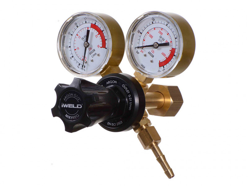 Mikyreg nyomáscsökkentő család. 2 manométeres, nagy szabályozó kerékkel ellátott, sárgaréz test, korrózióálló bevonattal. Hosszú termék élettartamra tervezve. Gázfajta: Argon/Mix 230 bar maximális bemeneti nyomás, 22l/perc maximális átfolyás. Bemeneti csatlakozás: G1/2" Jobb Kimeneti csatlakozás: G1/4" Jobb Európai tervezés és gyártás.