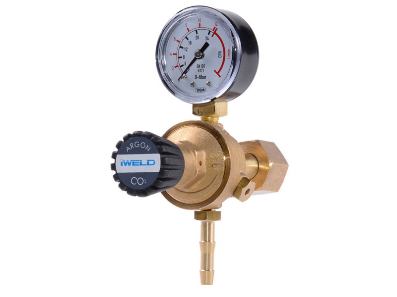 IWELD MINIREG CO2 nyomáscsökkentő, max. bemeneti nyomás: 230 bar, max. kimeneti nyomás: 22l/perc, kivitel: 1 manométer.