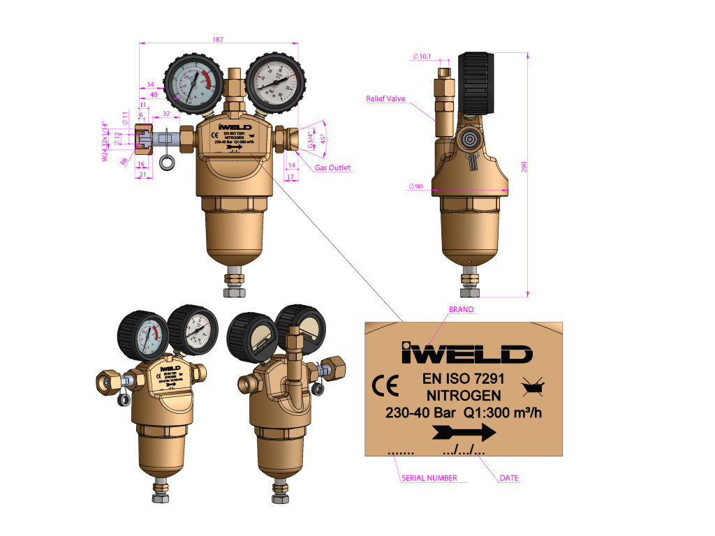 IWELD központi nyomáscsökk. egység N. 230/40bar,300m3/h W24,32X1/14"