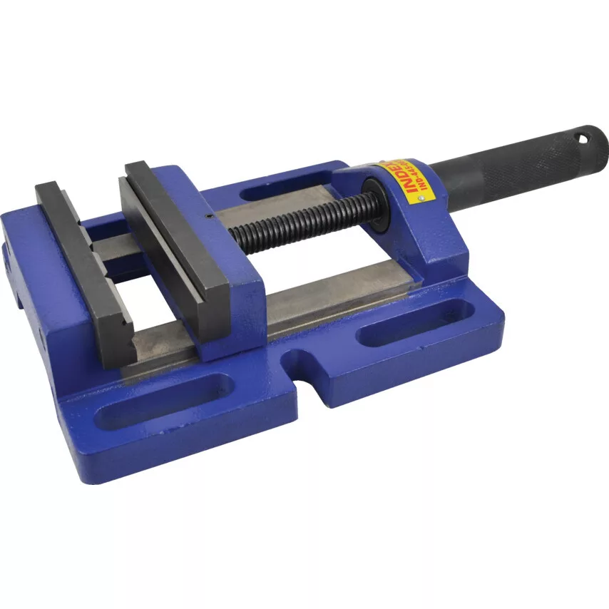 Fúrógép satu. Négy különféle satupofa szélességgel Fúrásra és könnyű maró megmunkálásra függőleges és vízszintes munkákhoz Egy hornyolt és egy sima cserélhető satupofa nem szögletes vagy szabálytalan alakú munkadarabok befogásához A pofák és az orsó edzettek és köszörültek