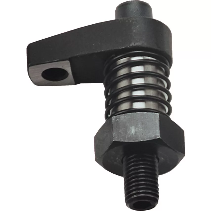 CC08 - Rugós lengőszorító. Kisméretű szorító nagyon jó tartó-erővel ideális szűk helyekre Elforgatható így nagyon gyors cseréket tesz lehetővé Anyaga Betétben edzett acél Hőkezelés utáni keménység HRC38-42 Kivitel Mangán-foszfatált