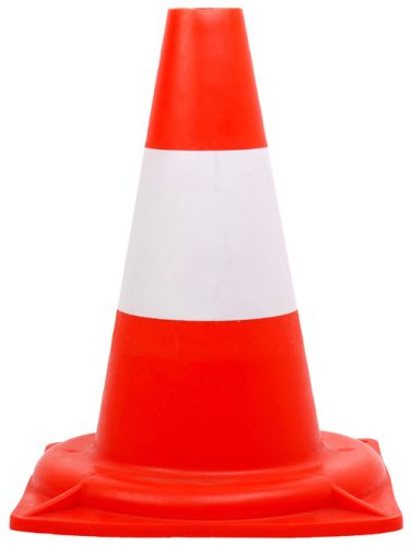 * stabil talpon álló közúti bója * széles, vízszintes fényvisszaverő csíkok, piros-ezüst szín * 54 cm magas, könnyű (0,85 kg) polietilén anyag