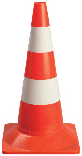 * stabil talpon álló közúti bója • széles, vízszintes fehér csíkokkal * 54 cm magas közúti bója* könnyű (0,85 kg) polietilén anyag* jól látható vízszintes csíkok