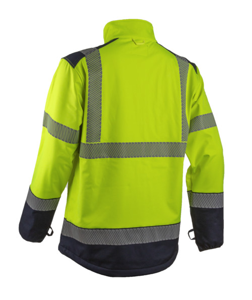 * 300 g/m2 vastag 3 rétegű Softshell alapanyag: 100% poliészter + TPU membrán + 100% poliészter mikropolár * szegmentált fényvisszaverő csíkok: 5 cm széles * az alapanyag vízállósága: 3000 mm , páraáteresztő képessége: 800 g/m2/ 24h * koszolódás mentes kontraszt betétek a vállon, a mandzsettánál és az aljrészen