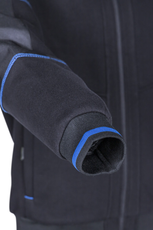 * 300 g/m2 vastag alapanyag: 70% pamut és 30% poliészter* Oxford 300D alapanyagú megerősítés* 95% poliészter és 5% elasztán alapanyagú rugalmas, bordázott textil mandzsetta és aljrész* az álló gallér tetejéig futó cipzár nyak- és állvédővel, sok zsebbel