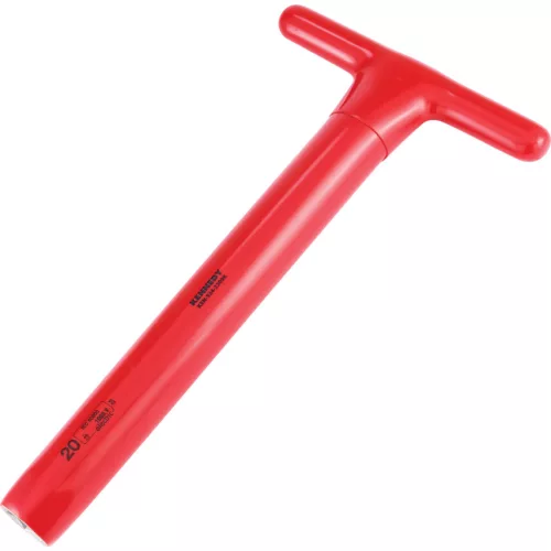 Szigetelt T-nyelű csőkulcs. A szerszám oldalára nyomtatott méret és szabványadatok segítik az azonosítást Hőkezelt horganyzott acélcsőből készült a tartósság érdekében Számos méretben elérhető hogy minden igénynek megfeleljen IEC 60900
