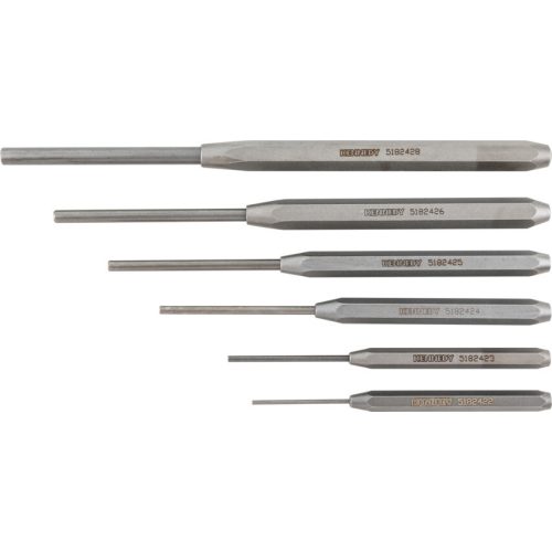 Extra hosszú betétes csapszegkiütő. Króm-vanádium acélból készült Csapszegek illeszt szegek eltávolítására Készlet tartalma 2 3 4 5 6 és 8mm Műanyag tokban kapható