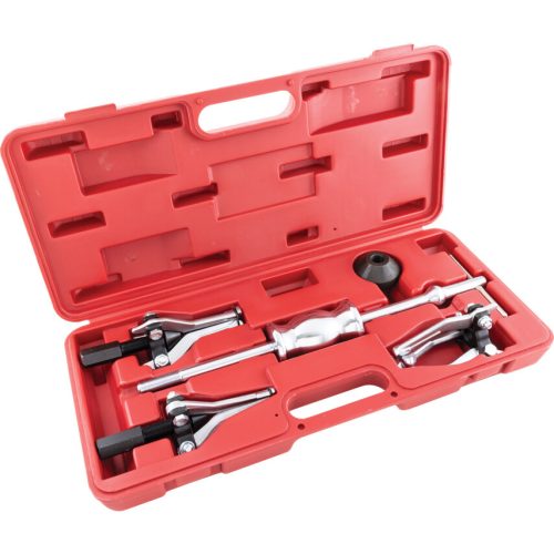 Csúszó kalapácsos lehúzó készlet. IEP Edzett és krómozott karbonacél csúszó kalapács 1 2 kg súllyal Csapágyak lehúzására olyan helyeken ahol tengely vagy más szilárd felület nem hozzáférhető melynek a nyomócsavart vagy a hidraulikus dugattyút nekitámasztanánk A csapágy eltávolítása a csúszó kalapács súlyának ütése által történik melyet a rúd végén lévő ütközőre fejtünk ki A lehúzókarok biztonságosan rögzíthetők a csapágyon a kúpos anya meghúzásával mely helyükre zárja a karokat Fröccsöntött tárolótáska A készlet tartalma 1x T-rúd 1x kalapács 1 2 kg 1x 3 karos belső lehúzó 15-30 mm 1x 3 karos belső lehúzó 30-80 mm 1x 3 karos külső lehúzó 15-80 mm 1x fröccsöntött táska