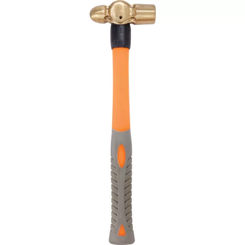 Alumínium-bronz szikramentes biztonsági szerszámok - Gömbvégű kalapács. A szikramentes szerszámokat azért használják hogy kizárják a véletlen tüzek vagy robbanások keletkezésének esélyét a tűz-vagy robbanásveszélyes munkahelyeken Ezek a szerszámok a normál kivitelű szerszámokkal ellentétben nem képeznek szikrát kemény felülethez történő ütés következtében A szikramentes szerszámok használata alapvetően fontos sok ipari alkalmazásnál úgymint vegyipar olajipar festékszóró fülkékben végzett műveletek hajózással kapcsolatos ipari műveletek bányászat papírgyártás vagy bármely más olyan munkaterület ahol gyúlékony gőzök vagy tűzveszélyes maradványanyagok vannak jelen Az alu-bronz szikramentes biztonsági szerszámok keménysége 25 HRC szakítószilárdságuk 75-85 kp mm2 A szikramentes biztonsági szerszámok karbantartását nagy körültekintéssel kell végezni rendszeres időközönként szükséges tisztítani újraélezni hogy eltávolítsuk az esetlegesen rárakódott vastartalmú anyagokat vagy más szennyeződéseket melyek ronthatják a szerszámok használati értékét Gömbvégű kalapács Használható hidegvágóval lyukasztóval pontozóval szegecselésre fémalakításra Tömött rostú keményfa nyéllel