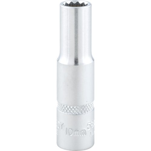 12-szögű hosszú dugókulcs fejek 3/8". 12 szögű kivitel amely nagyobb nyomatékot eredményez Krómozott polírozott króm-vanádium acél Belül letört élekkel a csavarfejekre való gyors ráfogás érdekében Bels négyszög minden oldala horonnyal
