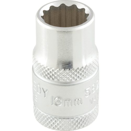 12-szögű normál hosszúságú dugókulcs fejek 1/2". 12 szögű kivitel - nagyobb nyomaték átvitelét teszi lehetővé Jól megfogja a lekerekített csavarfejeket Belső négyszög minden oldala horonnyal Csak 1 12 elfordulás szükséges a következő fogáshoz