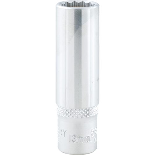 12-szögű hosszú dugókulcs fejek 3/8". 12 szögű kivitel amely nagyobb nyomatékot eredményez Krómozott polírozott króm-vanádium acél Belül letört élekkel a csavarfejekre való gyors ráfogás érdekében Bels négyszög minden oldala horonnyal
