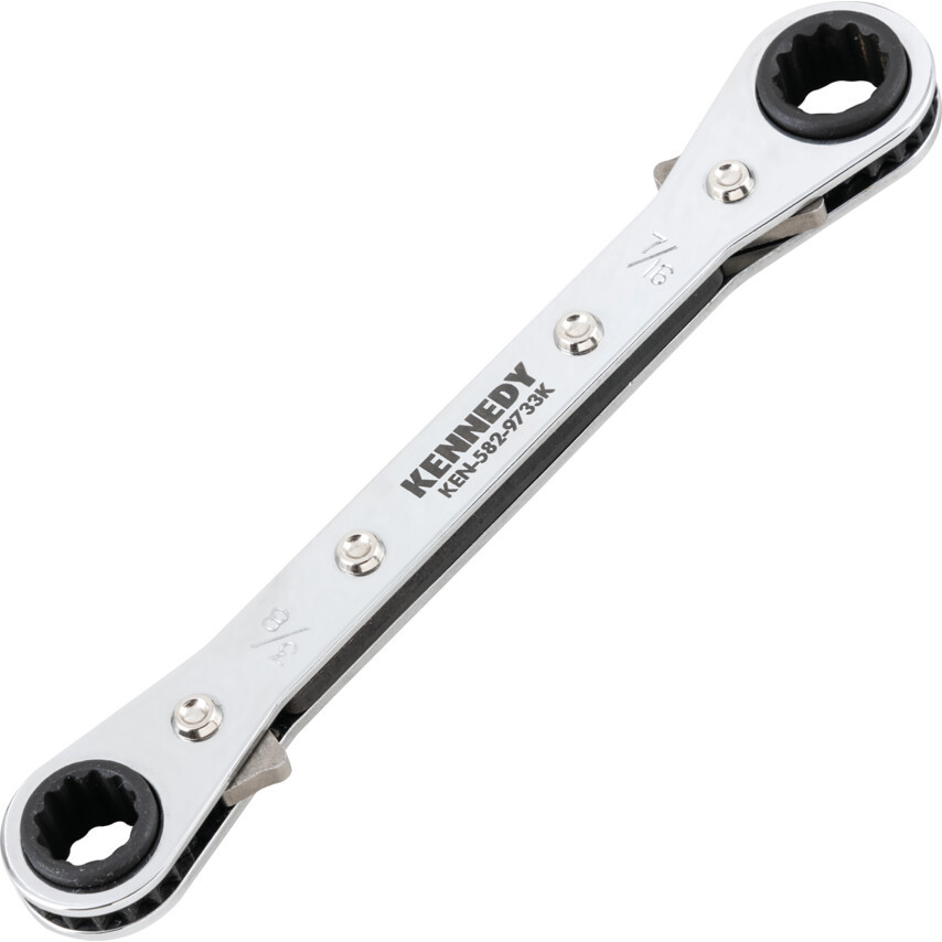 Racsnis zártkulcsok - Egyenes, Metrikus. Króm-vanádium acélból gyártott kulcsok 12-szögű fejekkel Szűk helyekre tervezve Mindkét oldalon beépített racsnival a nagyobb termelékenység érdekében A racsnik forgásiránya a kulcs oldalán található irányváltókkal változtatható