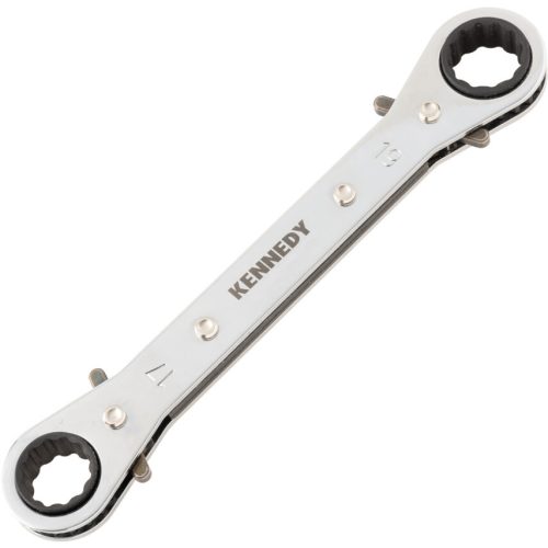 Racsnis zártkulcsok - Egyenes, Metrikus. Króm-vanádium acélból gyártott kulcsok 12-szögű fejekkel Szűk helyekre tervezve Mindkét oldalon beépített racsnival a nagyobb termelékenység érdekében A racsnik forgásiránya a kulcs oldalán található irányváltókkal változtatható